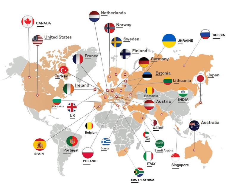 - Global Offices: USA, Canada, Brazil, Germany, Russia, Greece, and various countries in Africa, the Middle East, and Asia